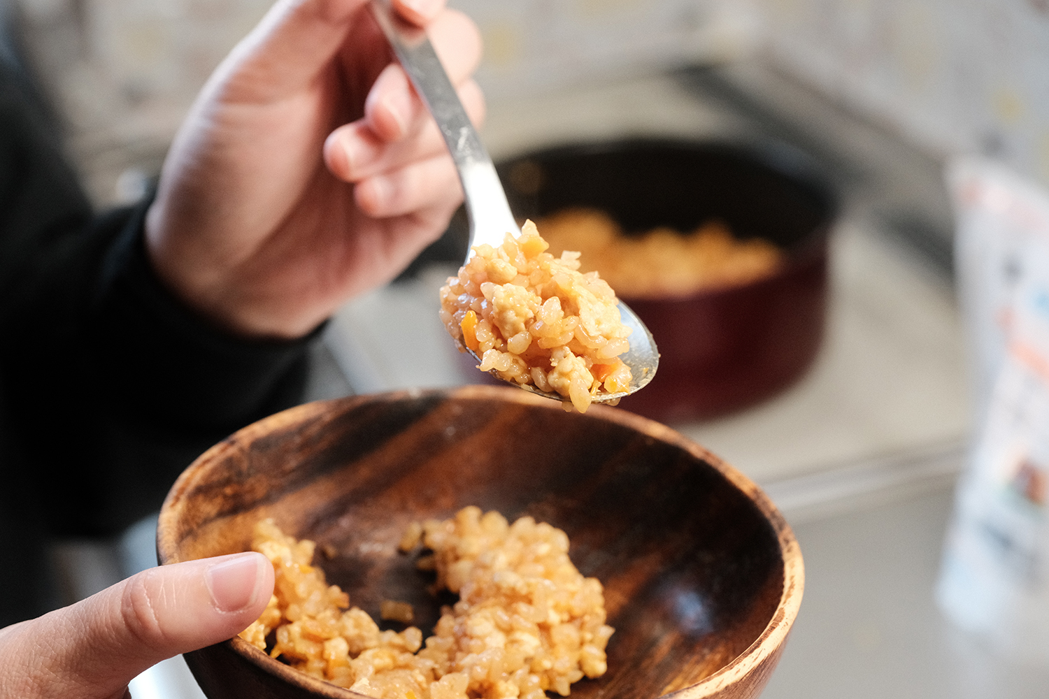 いきなり玄米100%にしちゃうと、子どもが食べにくいんですよね。ぼそぼそした食感が苦手だったり、噛む回数が増えて疲れたりする。私自身は玄米100%でも全然いけるんですけど、家族で食卓を囲むときに「自分だけ違うもの食べる」のもなんか違うなって。
