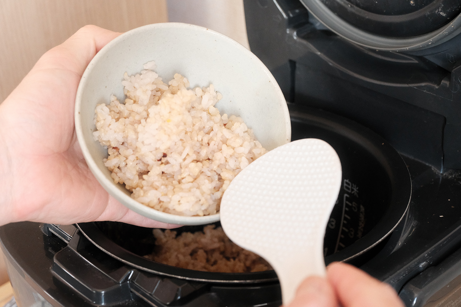 我が家のは何の変哲もないIH炊飯器。特別なことは何もしてないです。水を多めに入れて、玄米モードで炊くだけ。毎日これで続いてるので、「普通の炊飯器じゃダメなのかな」と迷ってる人がいたら、まずは今ある炊飯器で試してみればいいと思います〜。
