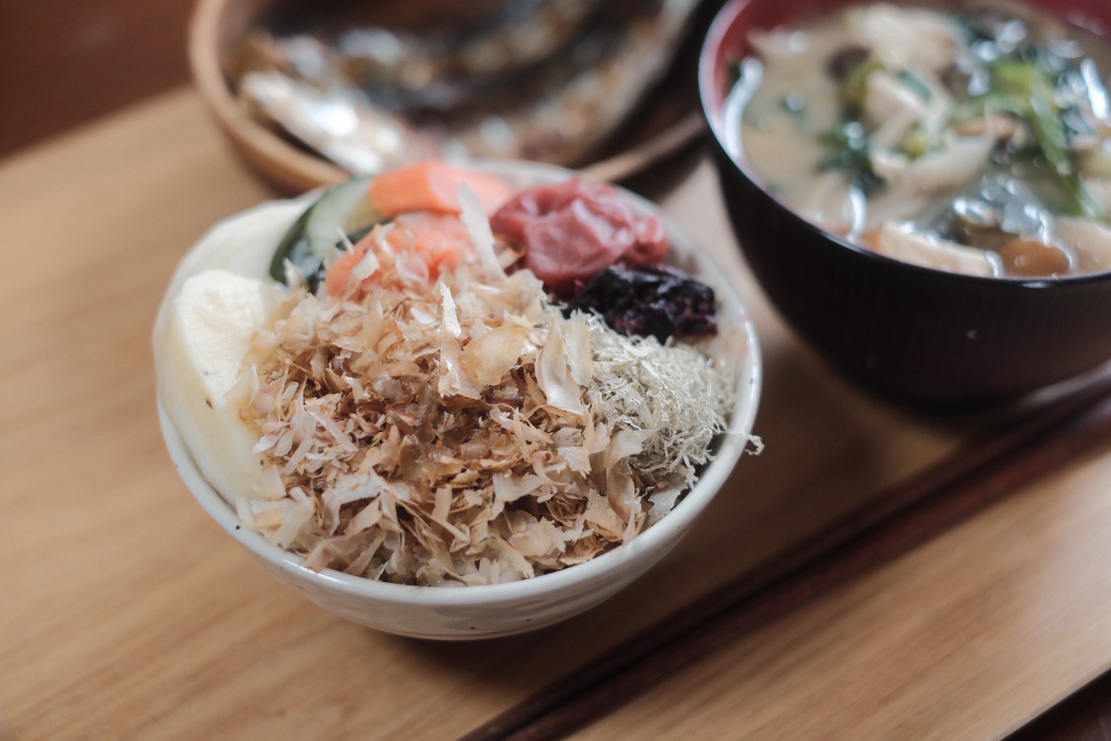 玄米ごはん・イワシ節・梅干し・自家製ぬか漬け・とろろ昆布