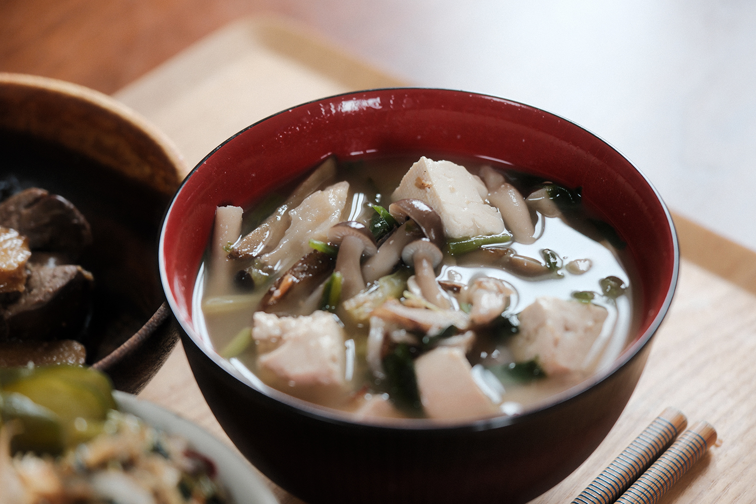 具沢山味噌汁(ほうれん草・小松菜・しめじ・舞茸・にら・にぼし・豆腐・ごぼう)