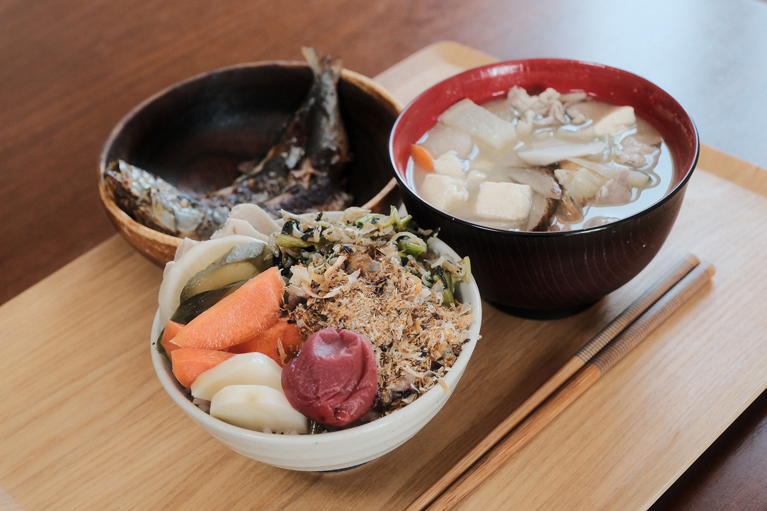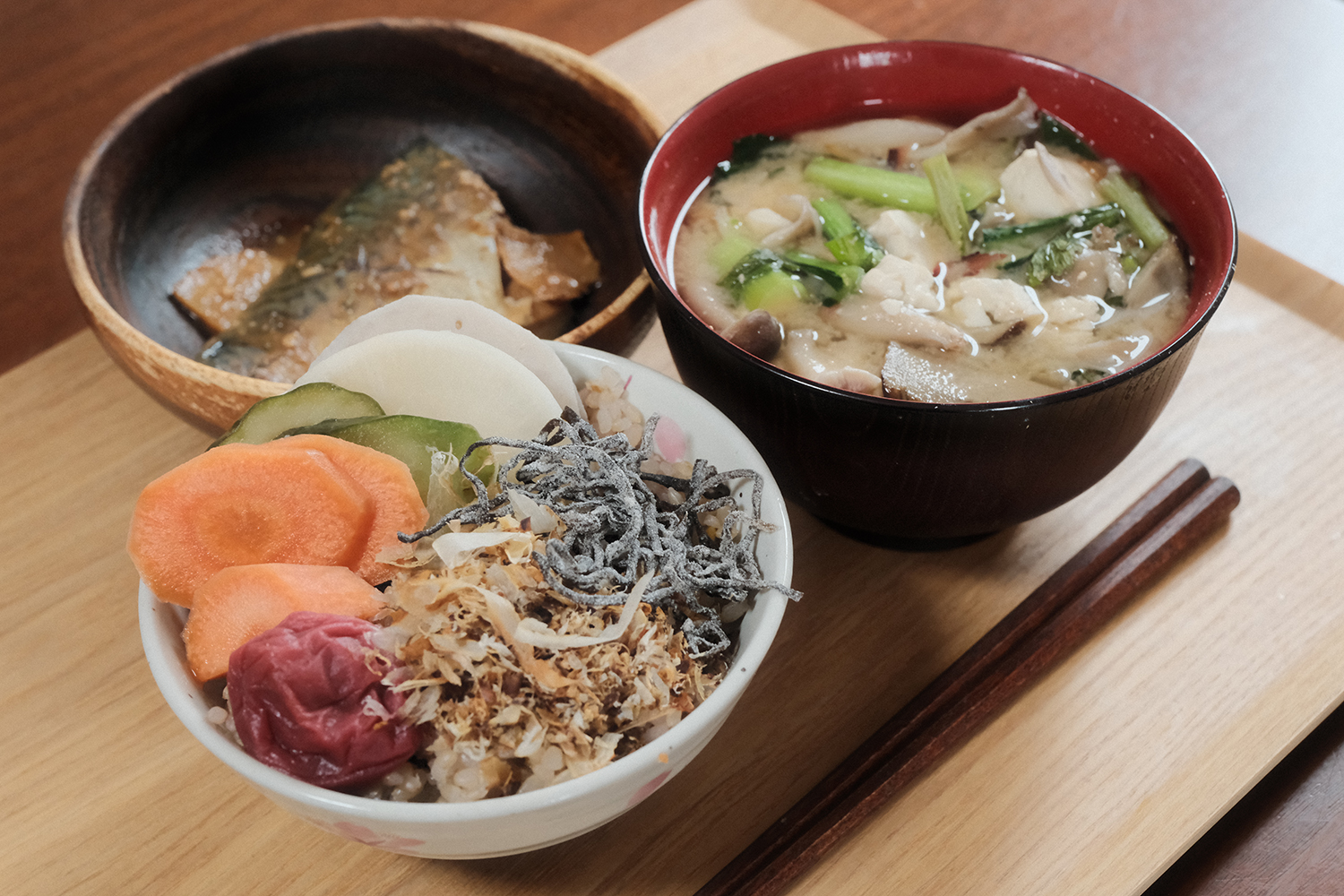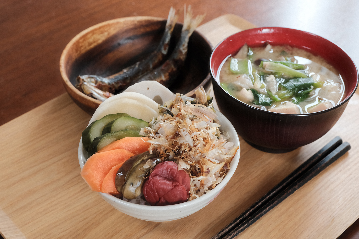 今日のメニュー 玄米ごはん(梅干し・いわしぶし・自家製ふりかけ)自家製ぬか漬け(大根・にんじん・きゅうり・れんこん)具沢山味噌汁〈豚汁風〉(白菜・豚肉・さとい... -