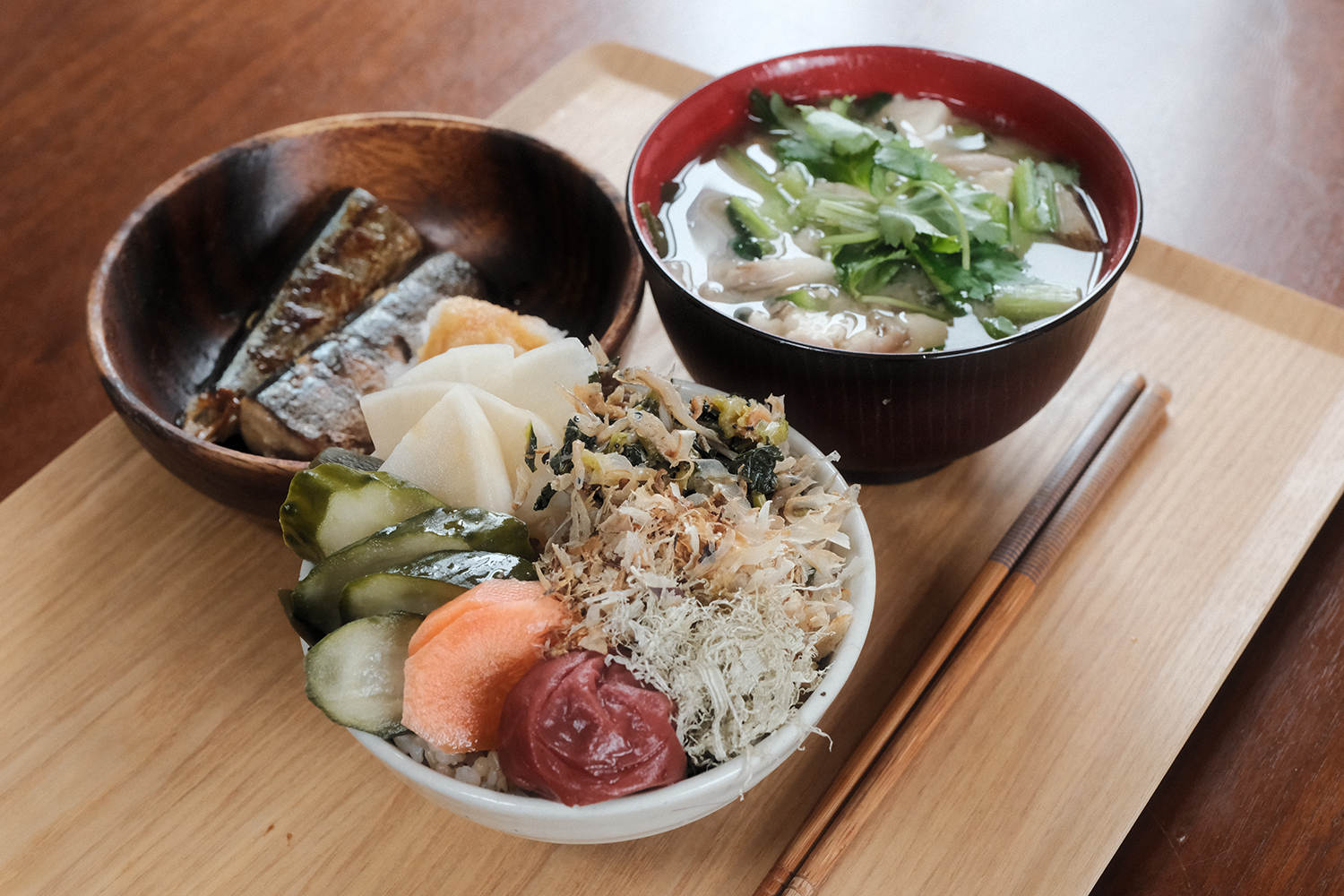 玄米ごはん・味噌汁・いわし。のせるものを少しずつ変えて楽しむ毎日