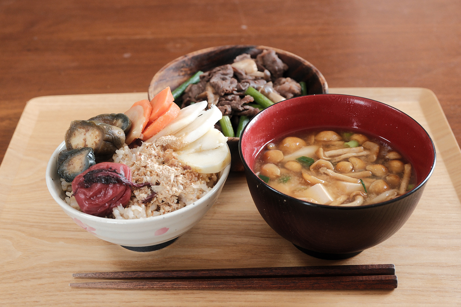 今日のメニュー 玄米ごはん(自家製ふりかけ・イワシ節・梅干し)自家製ぬか漬け(なすび・大根・にんじん)味噌汁(ほうれん草・小松菜・豆腐・ごぼう・しめじ・舞茸・... -